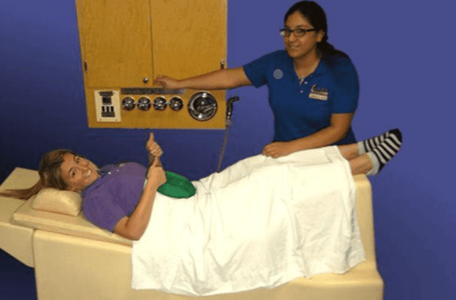 Vous êtes allongé confortablement sur la table d’hydrolavage, dans une pièce calme et intime.
